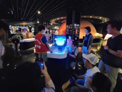 接下來,聽聽培訓小小解說員移地天文館實際展場進行解說,讓他們感覺十分刺激具臨場感。活動以「天文館參觀與解說」為主軸,融合天文知識導覽、觀星實作體驗與親子互動學習,成功點燃學生對天文科學的熱情,也增加了家長與孩子間的知性話題。
