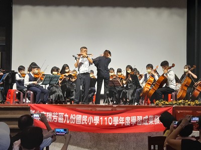 - 【新北市訊】今天(30日)黃金山城的昇平戲院傳來九份國小弦樂團的陣陣悅耳的樂音,探訪九份的旅客紛紛走進昇平戲院與九份孩子們一起沉浸在藝術饗宴中,從「獵人合唱」、「快樂頌」到「菊花台」,首首扣人心弦,讓樂音迴盪在九份山城。