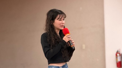 5. 墨色韻味:水墨畫與石膏版畫的對話,三年級的包凱扉與楊絜甯導覽了水墨畫與石膏版畫。他們細心解說了石膏版畫的創作過程,並展示水墨畫如何運用墨色濃淡、乾溼變化,製造出各種暈染與乾擦的技巧效果,歡迎所有來賓親身體會毛筆揮灑的樂趣。