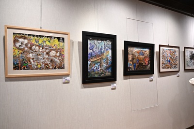 此次展覽主視覺由秀岡校區學生王元孝設計,以「永恆之光」為核心構想,融合色彩與流動線條,象徵靈感的生成與內心風景的映照。他同時展出「生化系列」四件作品,關注宗教、文化差異與心理意象,展現其對多元社會的觀察與思索。
