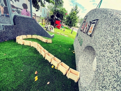 - 【新北市訊】為優化托育環境並維護幼生安全,新北市自108年起按系統性補助各園改善老舊遊戲場以符合3年定期檢驗規定,至今共改善198園,同時鼓勵各校結合校訂課程、在地文化或校園特色等理念,打造具安全認證的特色遊戲場,迄今公立幼兒園已設置15座特色遊戲場。今(112)年度板橋國小附設幼兒園、山佳國小附設幼兒園及永平國小附設幼兒園更配合學校在地環境,打造提供幼兒發展感官探索能力,並從遊戲中培養環境素養的特色遊戲場。