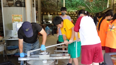 三芝國中執行老師帶領學生實地參訪位於石門山間的「出磺口農場」,由農場主人陳國志介紹當地環境保護與農業發展,學生親身體驗插秧及米苔目DIY,並分享體驗心得;江羽婷同學表示,插秧很辛苦,要珍惜每一粒米。張嘉軒同學則指出,無化學農藥的稻米讓土地得以永續。黃中良校長強調,透過此次活動,學生不僅了解當地文化,亦深入認識北海岸的特殊人文環境與在地農業發展。