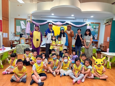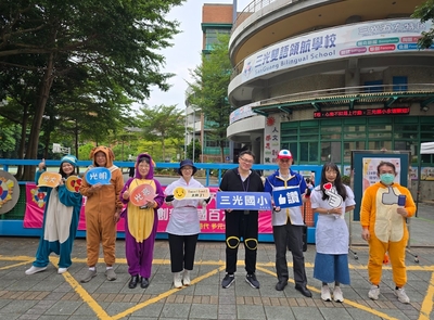 - 【新北市訊】開學囉!九月一日一大早,三光國小校園就在笑聲與驚喜中揭開了114學年度嶄新的學習序幕。今年開學日,校長陳敏輝特別化身為「寶可夢大師小智」,偕同家長會張煜亨會長、志工隊蘇麗儀隊長化身為寶可夢角色;而多位主任們則一一變裝為各式神奇寶貝角色,滿懷熱情地站在校門口,迎接孩子們回到熟悉又充滿新鮮感的校園。他們手捧精心準備的小點心,逐一分送給國小部與幼兒園的小朋友,為孩子們帶來驚喜與溫暖的祝福。