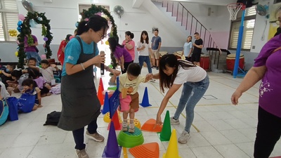 今年迎新以「澳學千里,志立於底」為主題,祝福孩子們從澳底國小出發,在紮實穩固的基礎下,讓學習無限延伸,活動設計三道寓教於樂的闖關活動,每過一關,則可獲得上學禮物,讓孩子們在遊戲中激發學習動力,感受成長的喜悅。第一關勇闖勤學門,孩子以敲擊小獅鼓的方式,象徵立定勤學志向,第二關聰明金頭腦,以穿越蔥門、走過障礙道,象徵「聰明智慧、勇敢挑戰」,第三關快樂平安門,則以跳跳呼拉圈,象徵「平安入學」。闖關後的孩子們都獲得書包、益智疊疊杯及小蘋果等開學祝福禮,在師長與家長陪伴下,每個孩子都從活動中,認識並熟悉新朋友,並慢慢展開歡欣的笑顏。