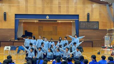 本次交流的重要亮點,為造訪群馬縣前橋市箱田中學。當日學校特別舉辦入校歡迎儀式,由雙方師生進行表演交流與團體互動,展現台日學生的熱情與創意。隨後,中正國中學生分組入班,與日本學生一同上日語、英語、數學、體育、音樂等課程,並共同享用班級營養午餐,實際體驗日本校園生活。
